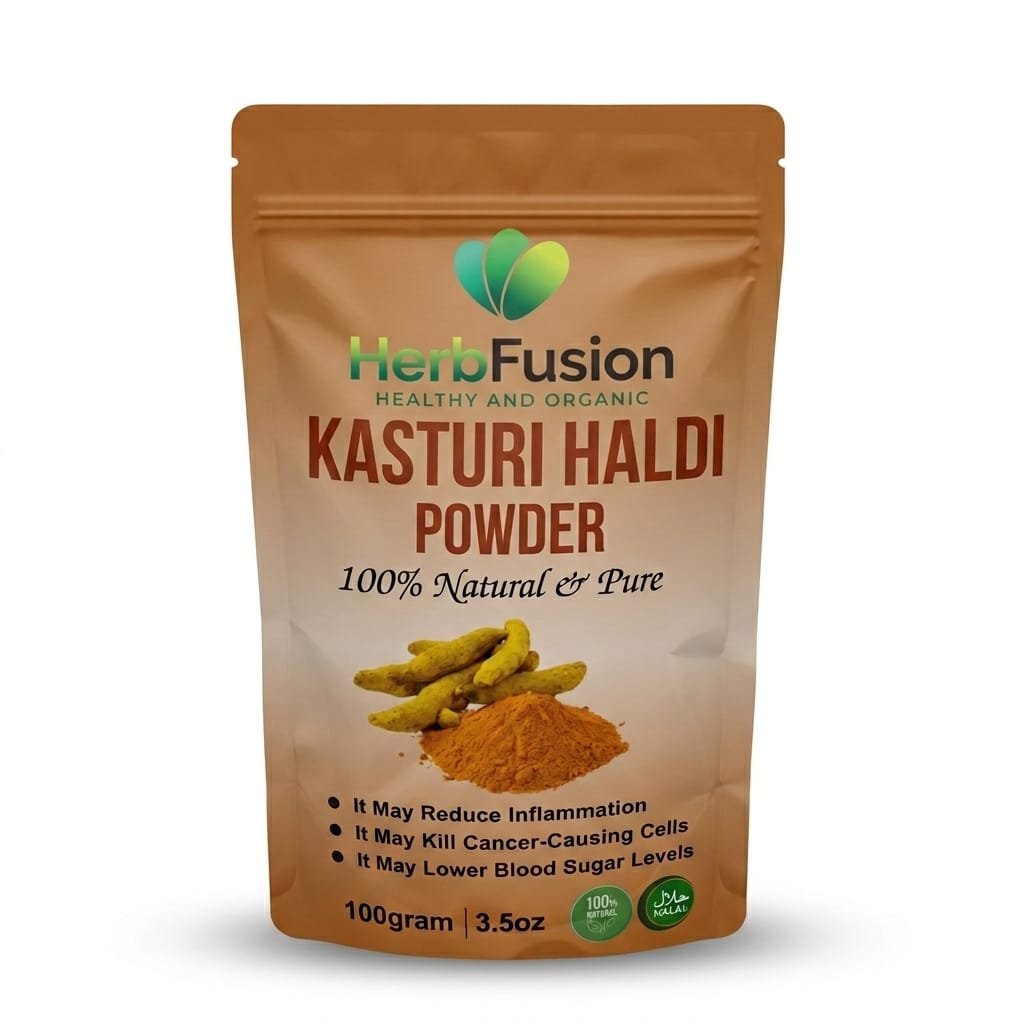 Kasturi haldi powder, also known as wild turmeric powder or aromatic turmeric powder, is derived from the rhizome of Curcuma aromatica, a plant native to India and Southeast Asia. It is closely related to the commonly used turmeric, Curcuma longa, but has a distinct aroma and appearance.